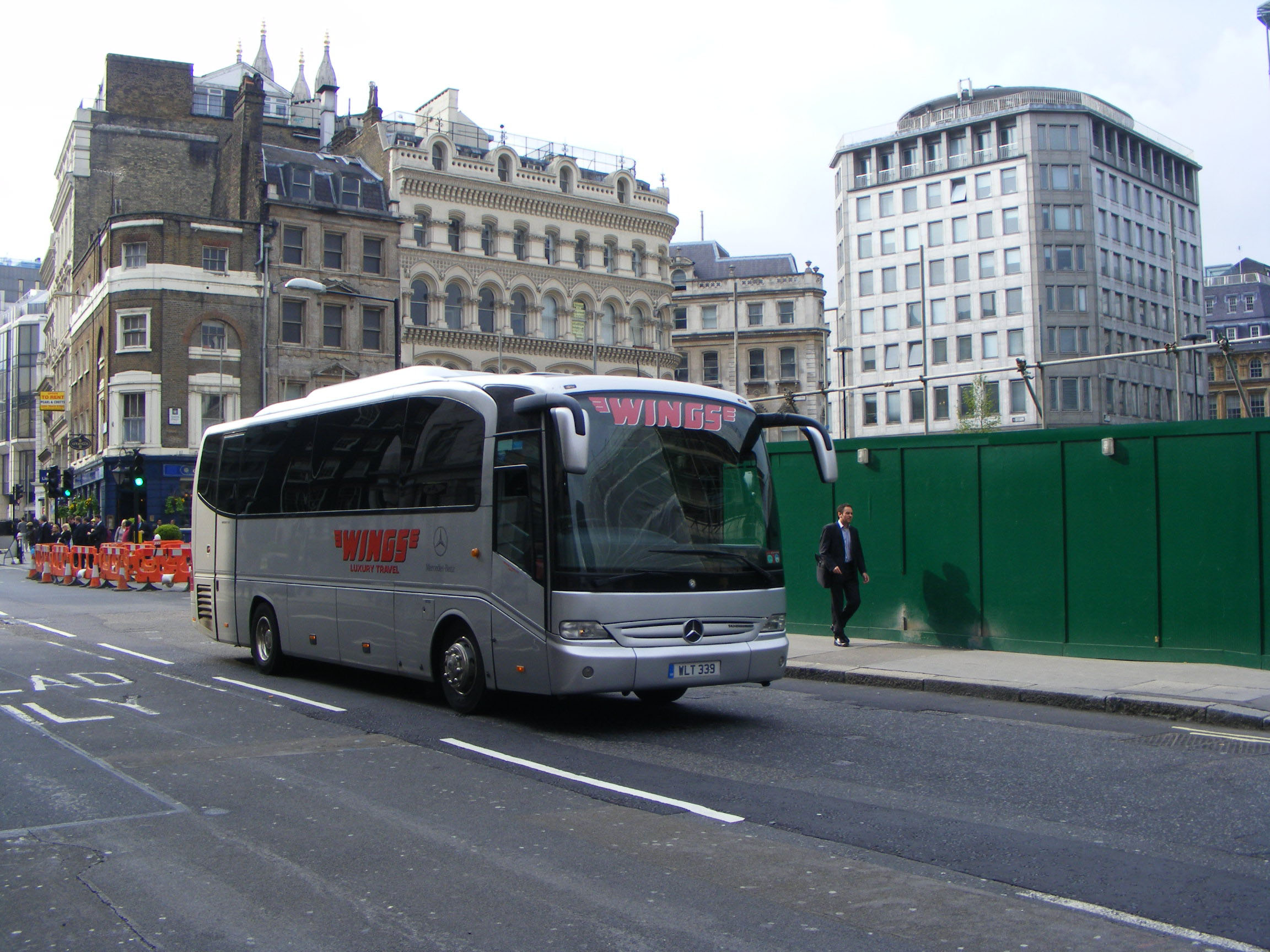 Seen racing down the M40 at High Wycombe is one of Wings luxury Mercedes Vario 814D minicoaches with Autobus Nouvelle coachwork and the registration off Routemaster RM732: WLT732. Whilst the bus routes were disposed of the coach operations continued. ![]() |