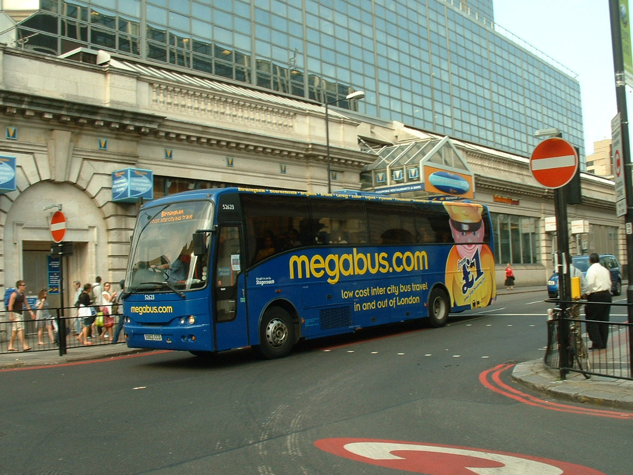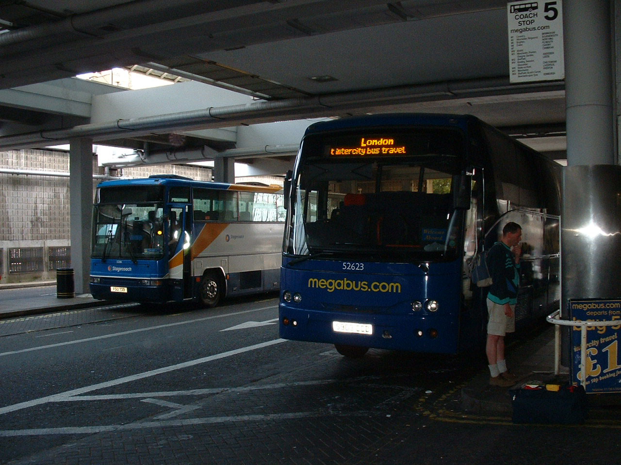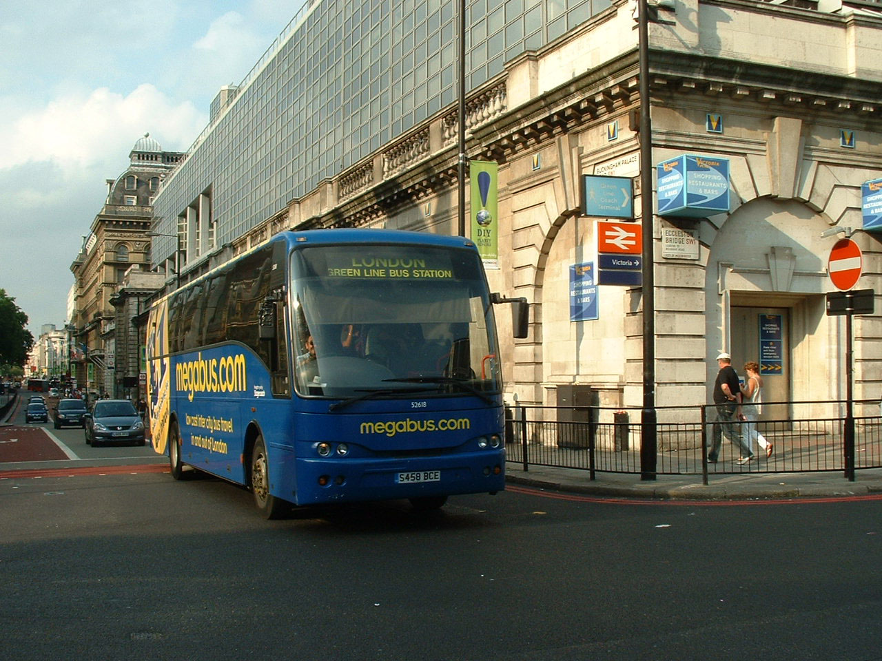 Former Stagecoach Cambus 458 (S458BCE) has been redeployed to the Megabus fleet and is seen here in Victoria in summer 2007. It is thought to have been in the care of Midland Red South at this stage working from their Rugby depot. |