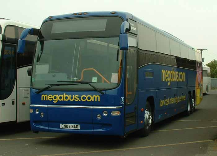 Stagecoach surprised everyone announcing an order for tri-axle Volvo B12MTs with 65 seat Plaxton Panther bodies for the Megabus network. Plaxton developed the body for the extra long chassis and this example was proudly displayed on the forecourt at Scarborough on the occasion of the Plaxton centenary celebration in April 2007.
