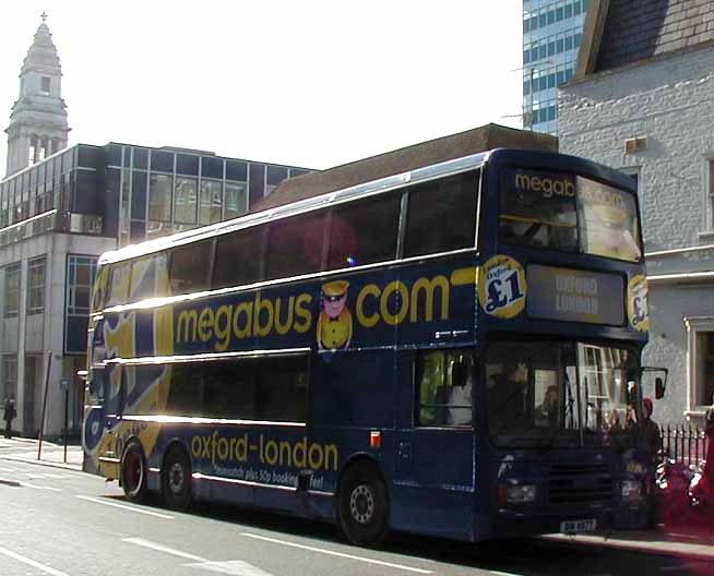 Megabus started in the UK in 2003 using ex Hong Kong Alexander bodied Leyland Olympians on the London - Oxford service. The service was in response to the threat by the Easy empire to start an Easybus route between London and Oxford and there was possible revenue abstractions from Stagecoach's long established Oxford Tube service. 13601 is seen in Oxford in October 2003. |