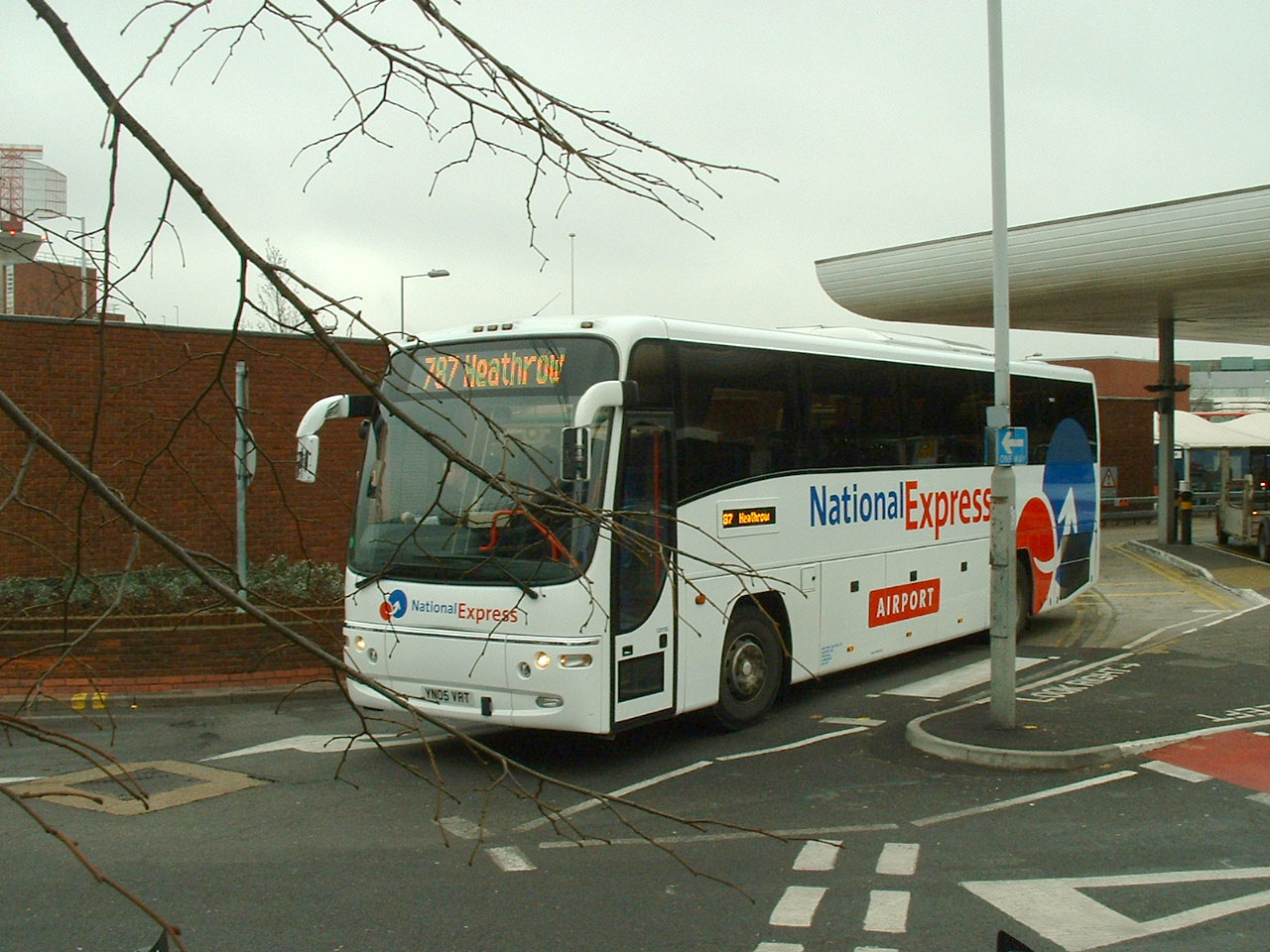 This National Express liveried coach was new to Burtons of Haverhill. The Plaxton Panther bodied Volvo B12B, YN05VRT, is seen at Heathrow in February 2006 on the 787. The coach later transferred within the Status Group to Classic. |