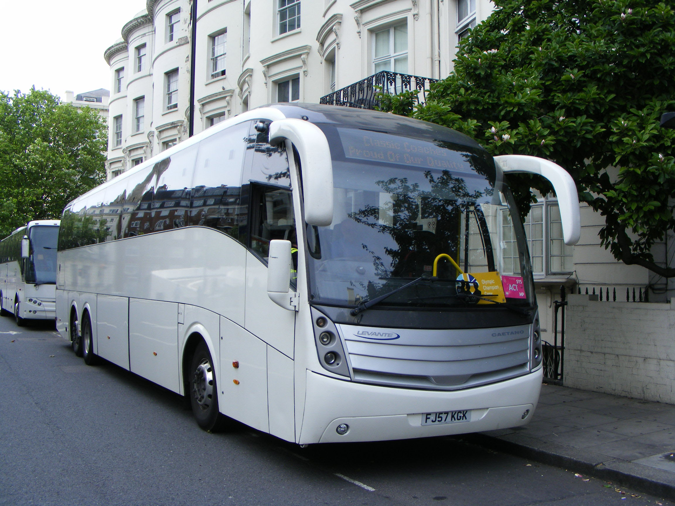 This Caetano Levante bodied Scania K340EB, FJ57KGK, was also new to Burtons for National Express work. Void of fleetnames its destination shows it is working for Classic, but the giveaway are the stickers in the windscreen showing it is deployed on London Olympic shuttles in August 2012 doing hotel transfers. |