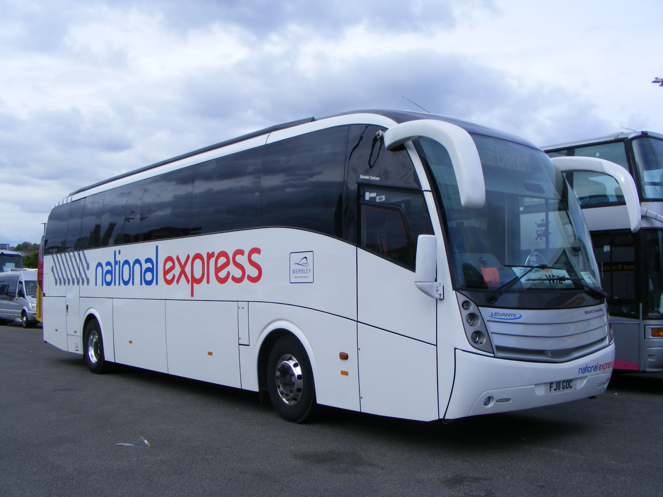 A Volvo B9R, FJ11GOC, from Walsall's Travelstar, is seen at the 2012 FA Cup Final at Wembley.