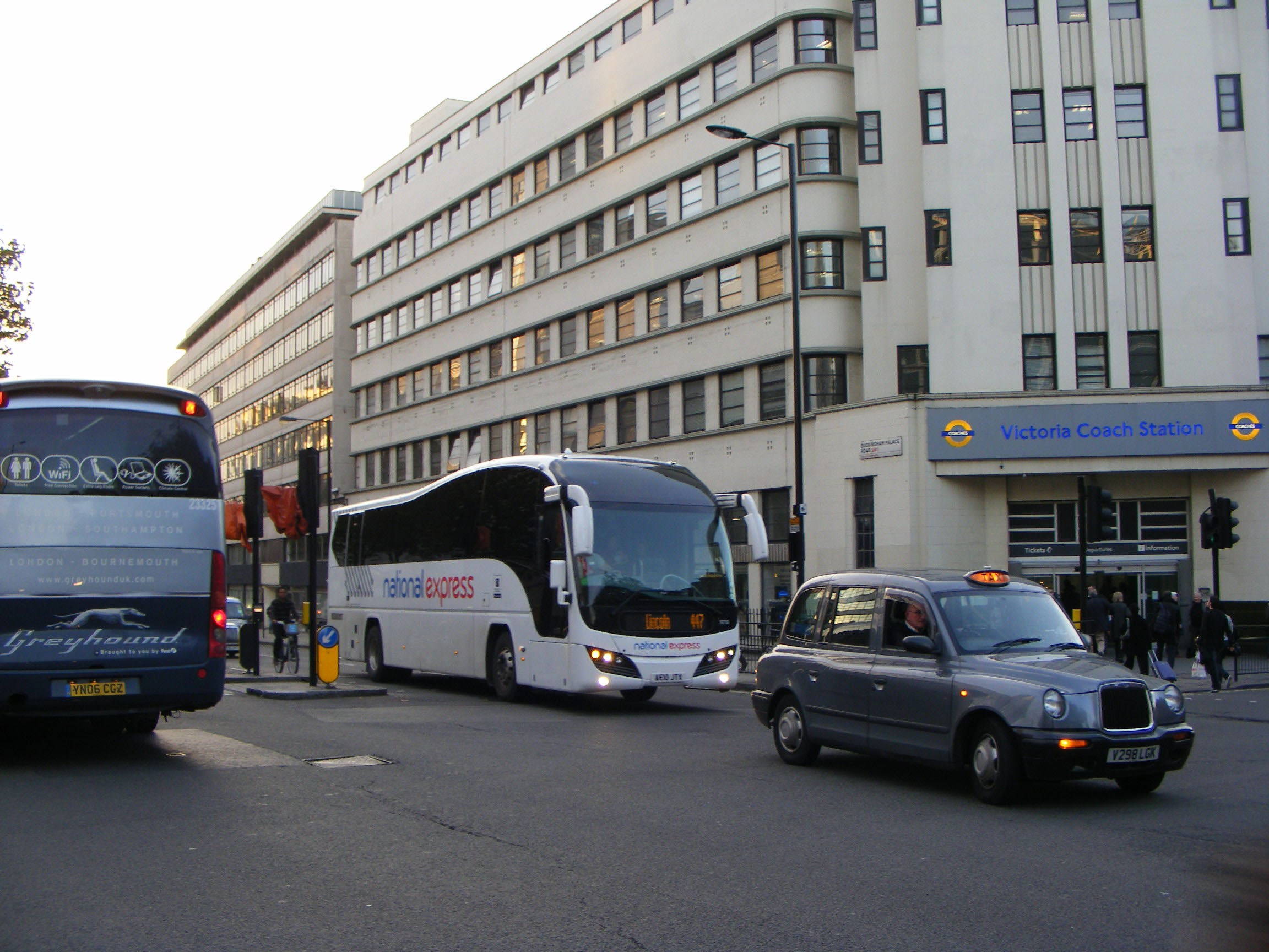 When launched the Plaxton Elite was a revolutionary design and is still a head turner. Largely through Stagecoach subsidiaries they found their was on to National Express services alongside the ubiquitous Caetano Levantes. Seen outside Victoria Coach Station in the company of First Greyhound Irizar PB bodied Scania K14EB 23325 (YN06CGZ) on the short lived south coast operation in October 2010 is Stagecoach East Volvo B9R 53710 (AE10JTX) headed for Lincoln. |
