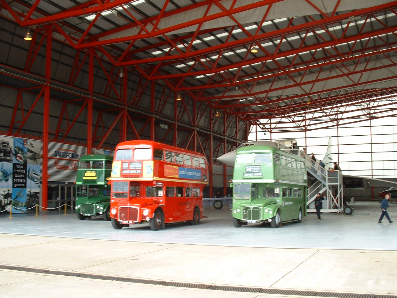 Looking like a model bus, Routemaster RM1000 is seen from the viewing gantry with Concorde.
