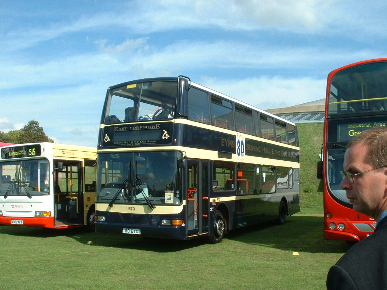 East Yorkshire substituted their original entry with freshly painted 670, appropriately reregistered 80EYC. The Volvo B7TL/Plaxton President had been decorated to celebrate the company's 80th aniversary, the official ceremony only days before SHOWBUS.