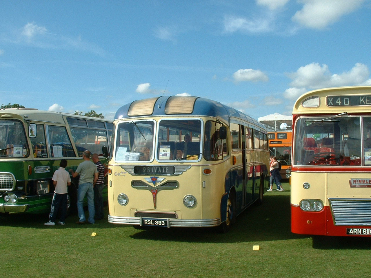 As Thamesdown's Scania slips by on the Site Shuttle, one of the most interesting vehicles at SHOWBUS is revealed. Entered by Grayscroft Coaches was a 1959 Ford Thames Trader with Burlingham coachwork, a very rare combination. The coach is appropriately registered GCC3 and originally hails from North Wales. Grayscroft are undertaking a major restoration of the vehicle and it managed to amke its way from their Lincolnshire base under its own steam, but to be on the safe side, was accompanied by the firm's recovery truck. Alongside is another comparitive rarity, a 1955 Harrington bodied Leyland Tiger Cub new to Silver Star Motor Services of Porton Down, near Salisbury, an independent taken over by Wilts & Dorset in the early sixties.
