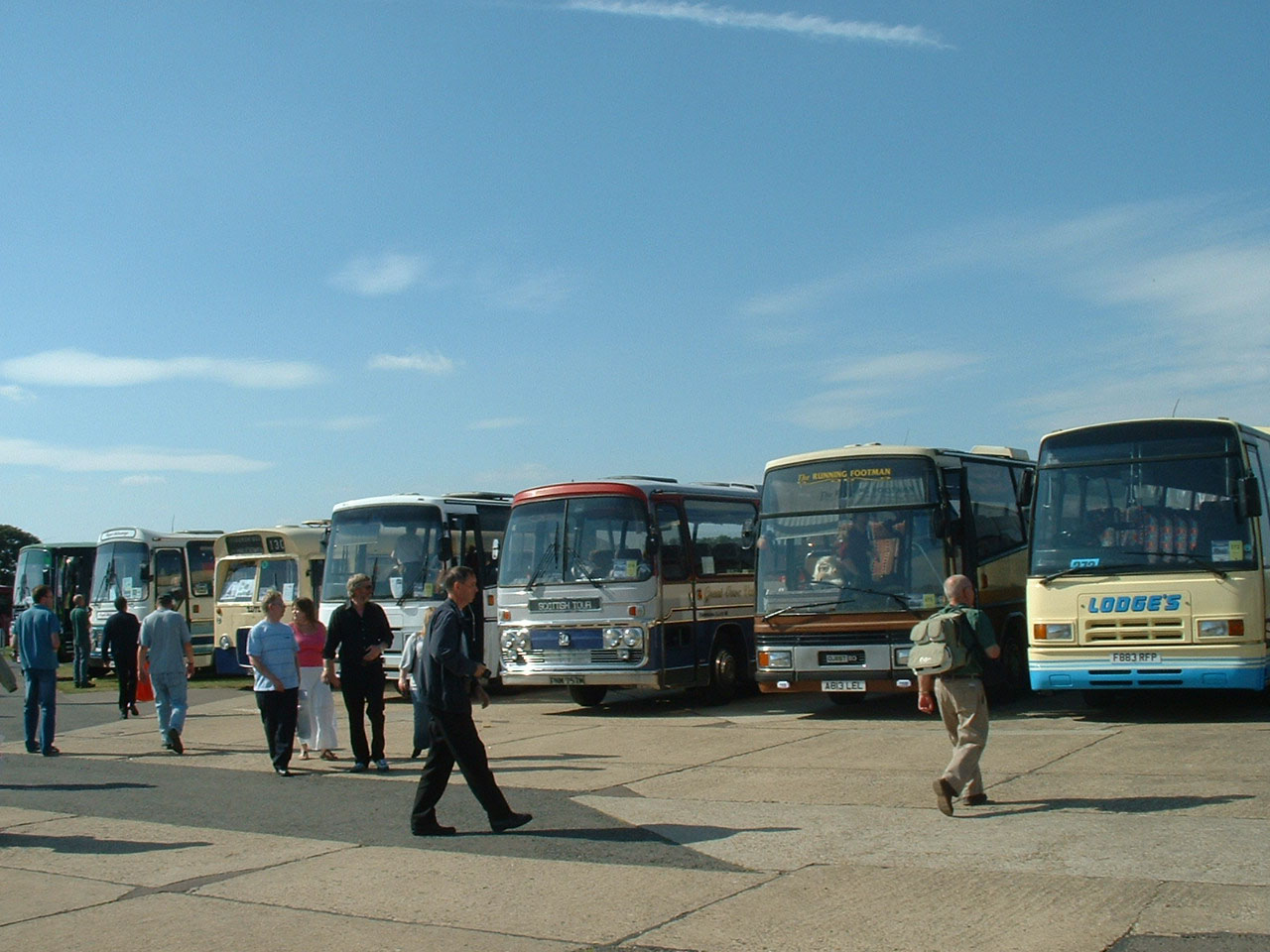 A fascinating mix of Plaxtons. First on the right is a Paramount bodied Dennis Javelin from Lodge's, sister the coach from the same batch entered by David H Harrod Coaches, this is followed by a Paramount bodied Quest 80VM built for Excelsior. Next up is the preserved Great Ouse Valley Panorama Elite III bodied Bedford YRQ followed by the white Bedford YMP. The next is a bus in West Midlands PTE livery. The bus was built by and new to Midland Red, one of their S23 models. These buses had their bodies finished by Plaxton. Two more unidentified Supremes finish the line.
