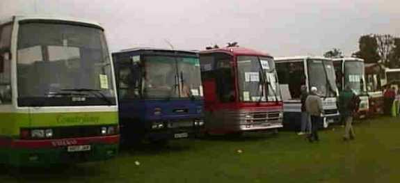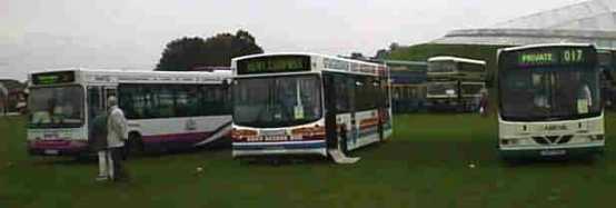 | Proud of their success at Showbus 97, Expressline's vehicles proclaim their Premier Operator title! | A diverse gathering of First Group corporate liveried vehicles | A new colourful purple livery for Trent's Rainbow route Excels - a Reading Excel 'Low-Rider' is alongside |