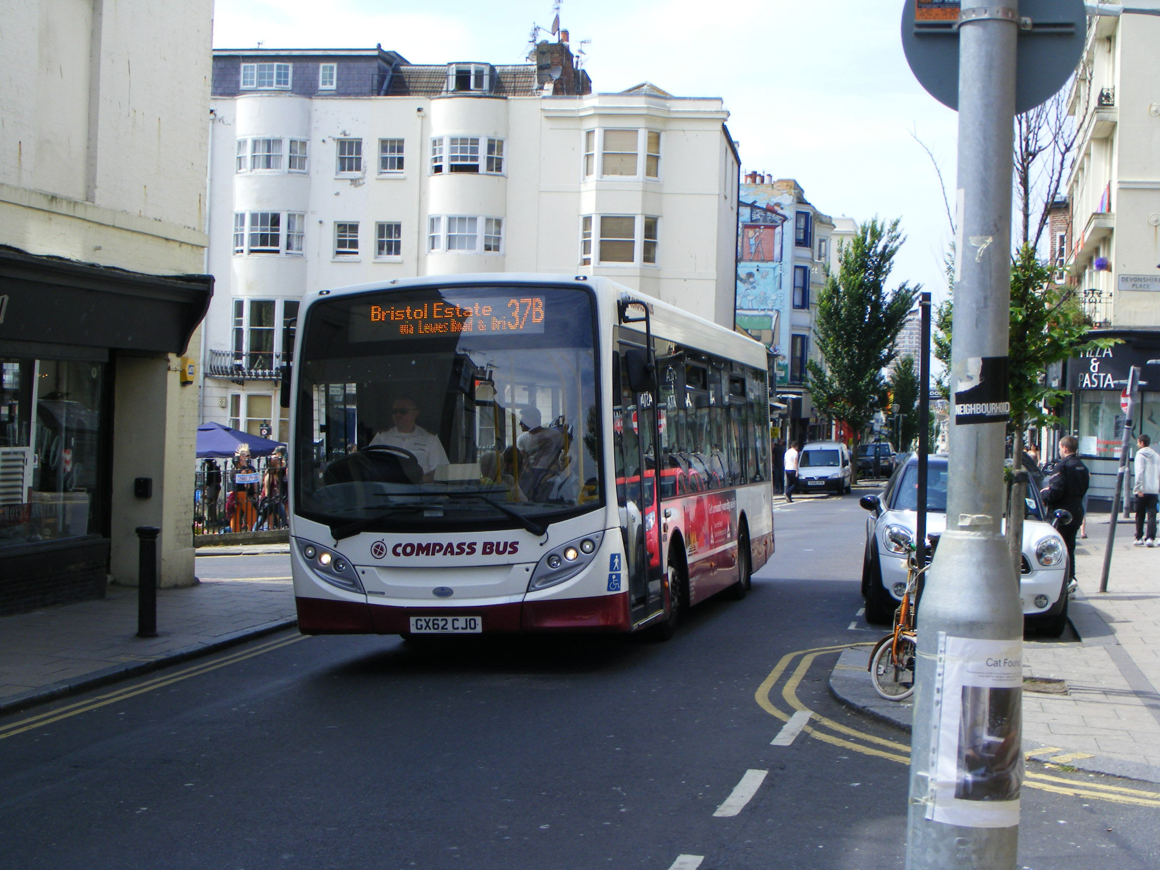 Working to Bristol Estate in Brighton in July 2013 was Alexander Dennis Enviro200 GX62CJU.