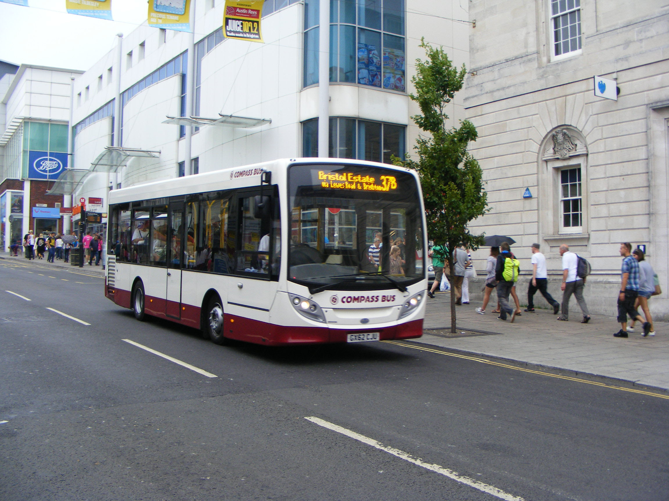 Whilst the majority of Compass' fleet is Alexander Dennis there are some Wright Streetlites. This unidentified one is seen on stand in a wet Guildford Bus Station in September 2013.