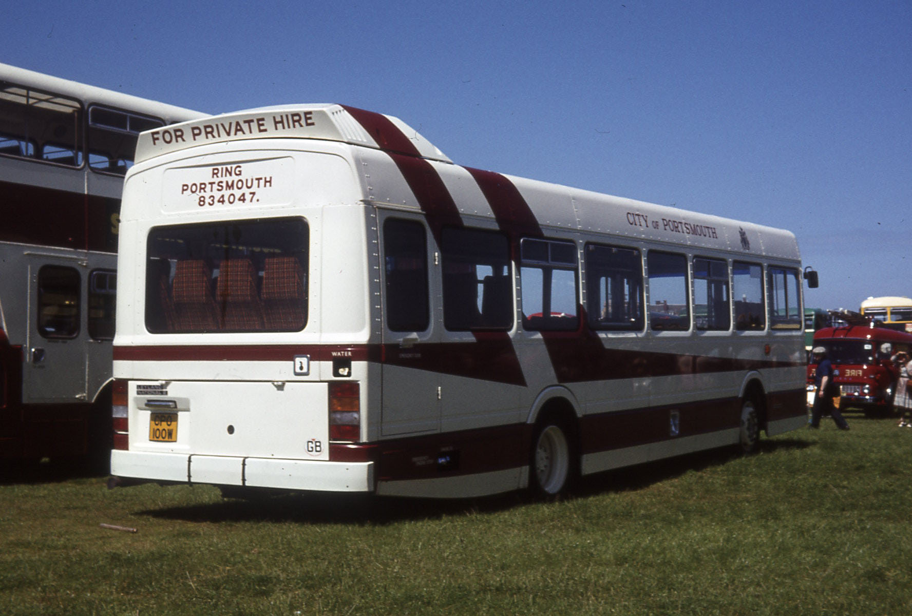 The livery was striking on this dual purpose 10.6m National 2 when it was new in the early eighties. Portsmouth 100 (CPO100W) is now restored and is seen at the 2001 Southsea Spectacular and is no less imposing all these years later.