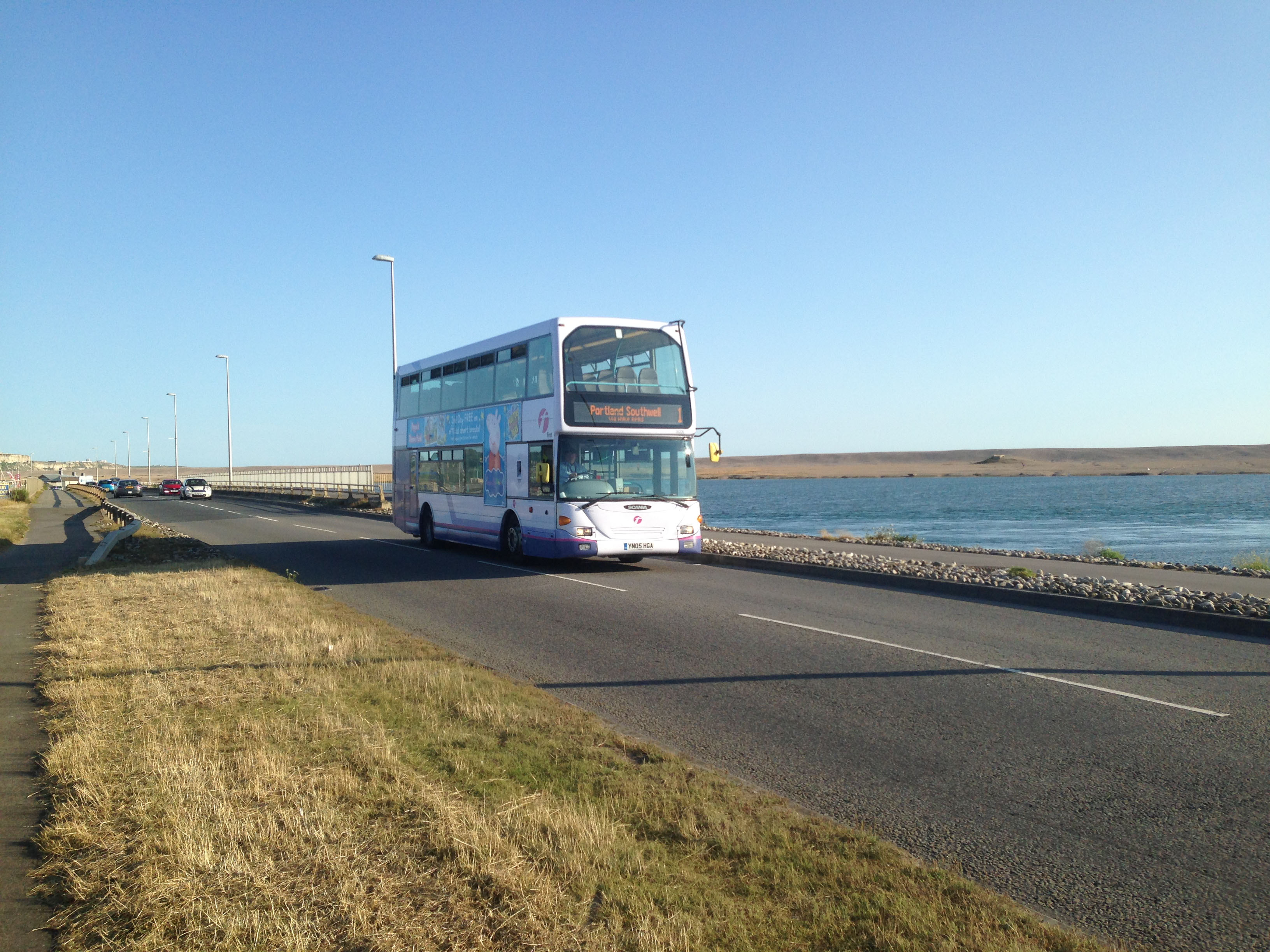 Heading to Portland Bill in July 2015 is East Lancs bodied Scania N94UD 36006 (YN05HGA).