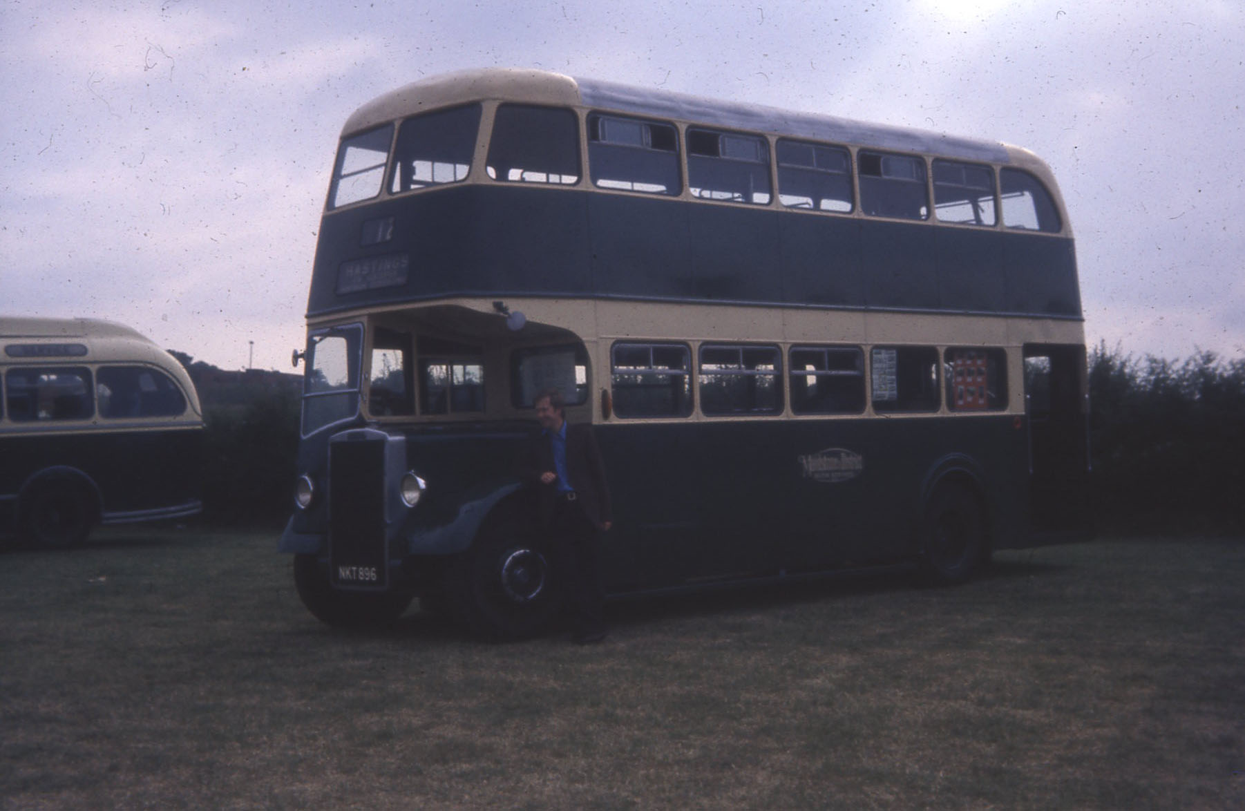 A bit of an imposter here, this Burlingham bodied PD2 was originally Ribble 1466 (JCK541), and would probably feel happier in Ribble red, with a little less cream paint. It found its way down to M&D as a driver trainer and has masqueraded as an M&D vehicle ever since. It is seen enjoying a refreshing shower at North Weald.