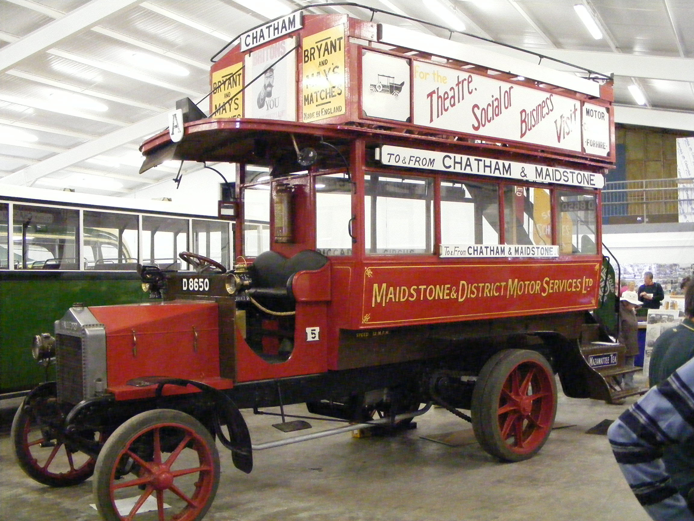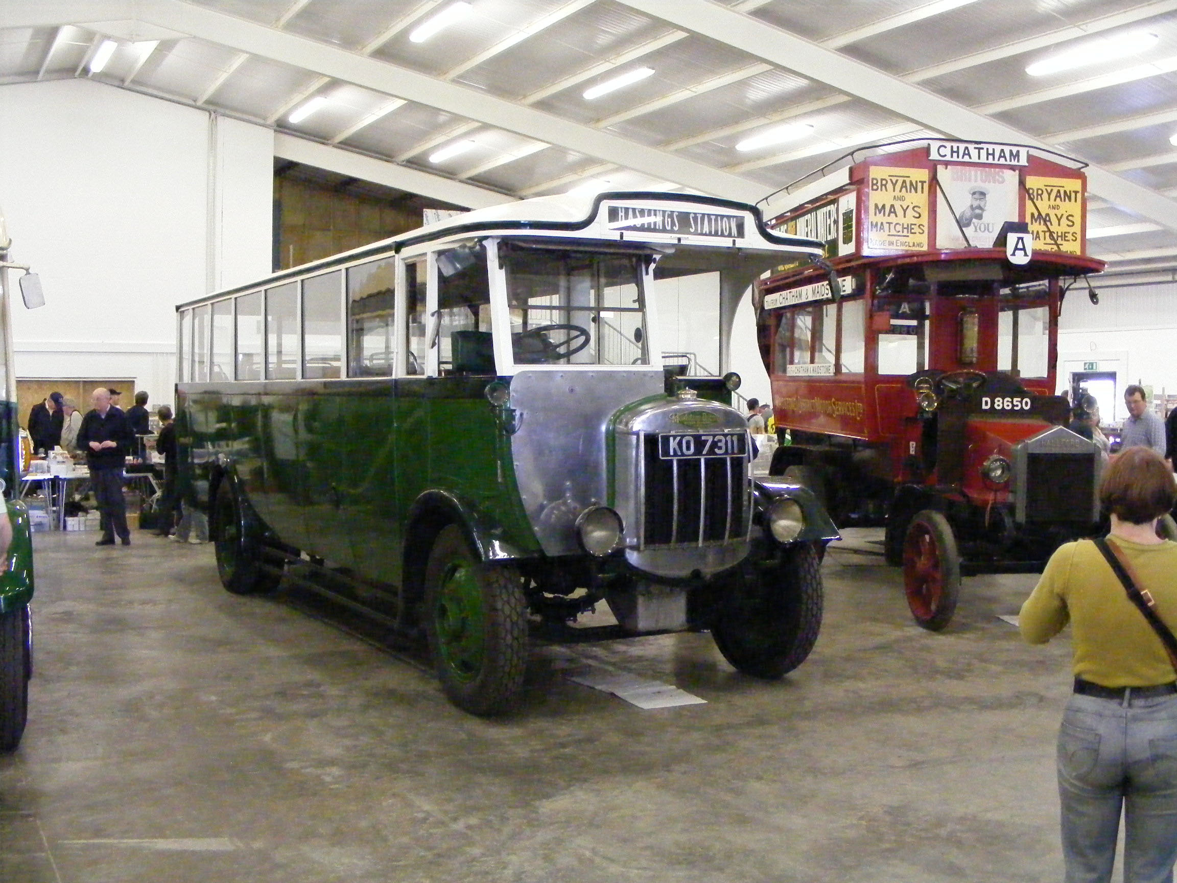 Earlier in the day the Tilling Stevens was on display under cover and alongside the oldest Maidstone & District bus at the event, a 1912 Hallford opentopper, D8650.