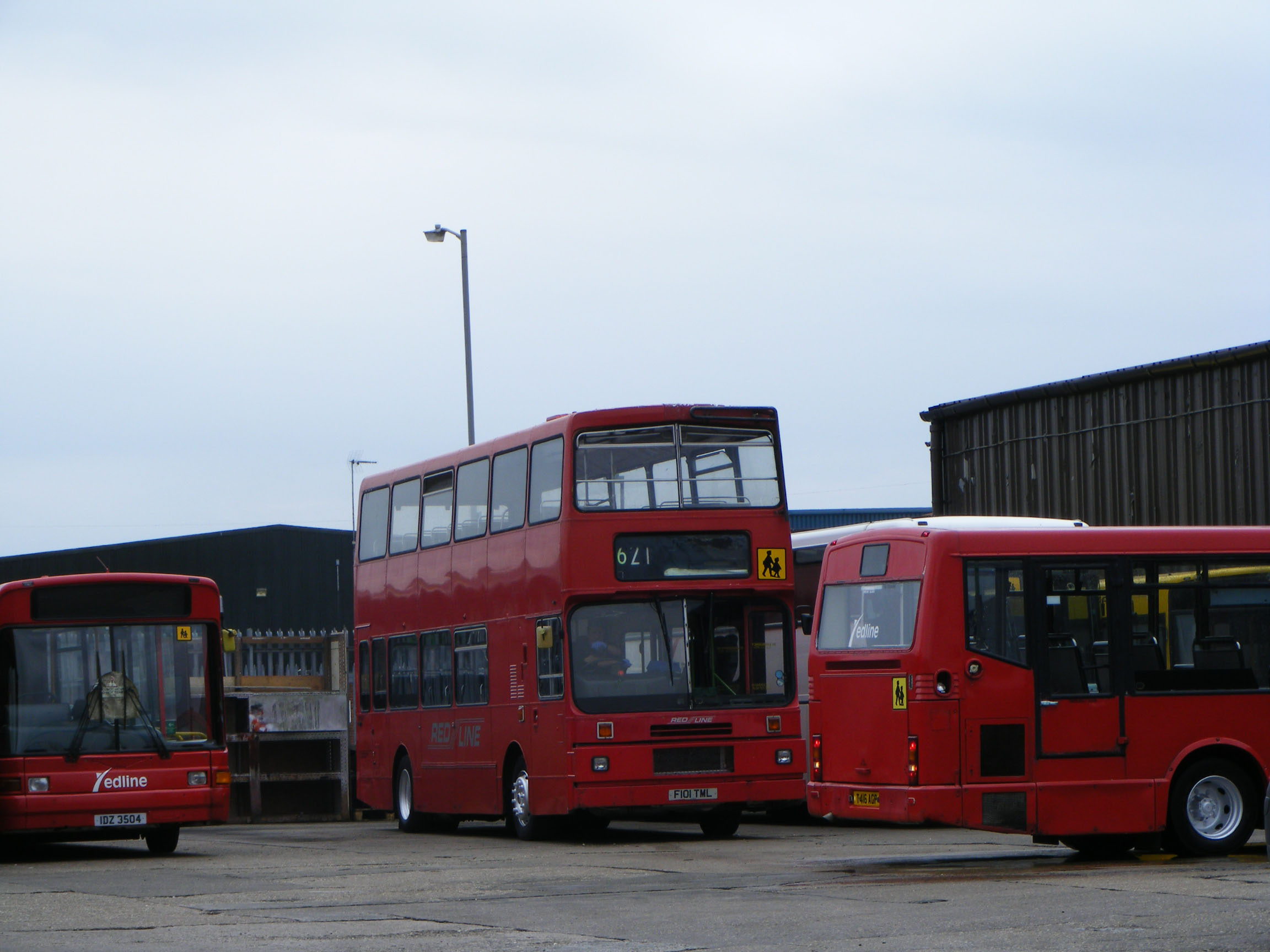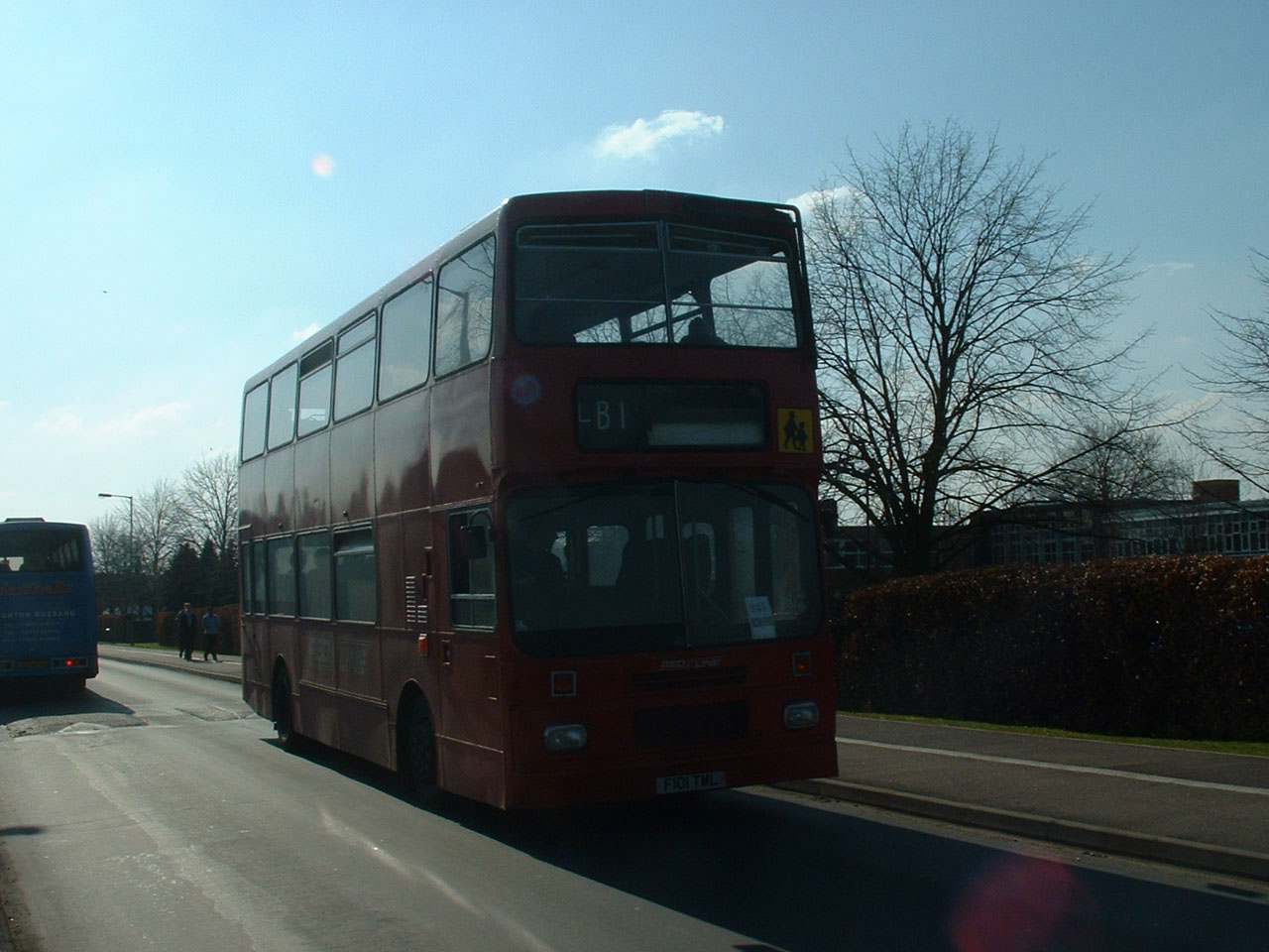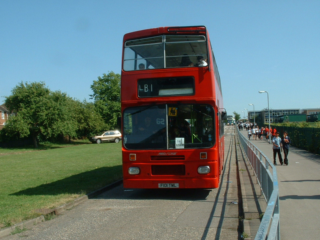 This September 2014 view has F101TML on the lefthand end of a line up of stored school buses at the associated Red Rose Travel depot at Stone. Next to it is a former Dublin Bus Leyland Olympian, RH57 (90D1057), now H643PTW, then another Citybus, former London & Country 639 (G639BPH). Finally there is all Leyland Olympian H557GKX, new to Armchair of Brentford. Picture ref A5097 |