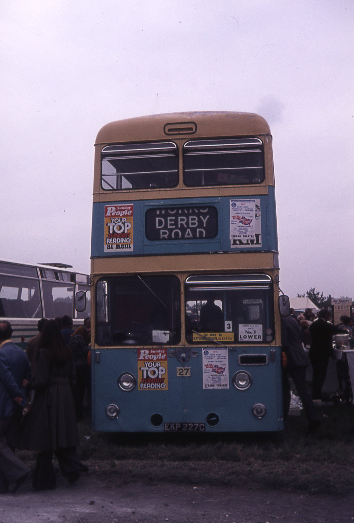Massey bodied Leyland Atlantean 27 (EKP227C) conveyed a party to the Derby on Epsom Downs. Though it wasn't an open topper, it was able to display an appropriate destination for the occasion!