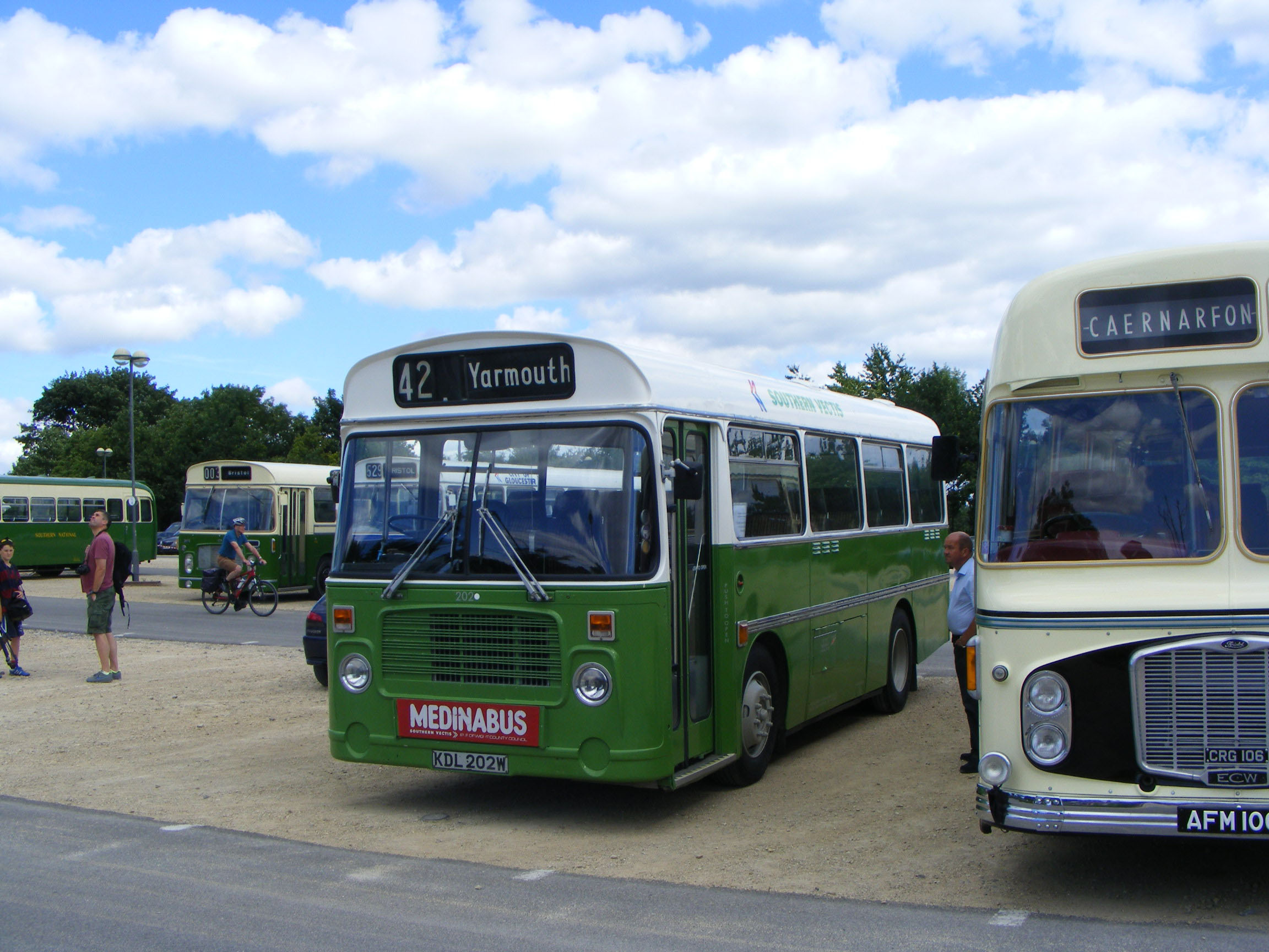 Preserved ECW bodied Bristol LHS6L 202 (KDL202W) was captured at Southsea in 2002 sporting running boards for the Cowes Clipper. Its NBC livery is in sharp contrast to LHS 201 below. |