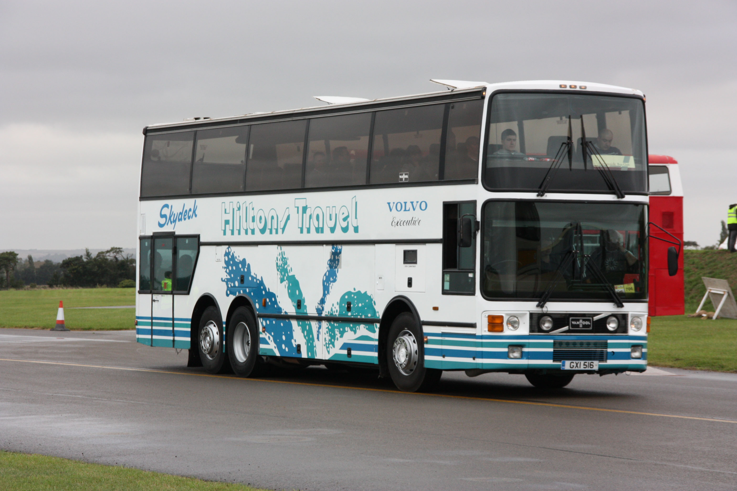 Arriving at SHOWBUS international 2010 was this well kept Van Hool Astral bodied Volvo B10M with rear salon of Hiltons on Newton-le-Willows, GXI516. It was new in 1989 to Excelsior as XEL14 for use on the London service.