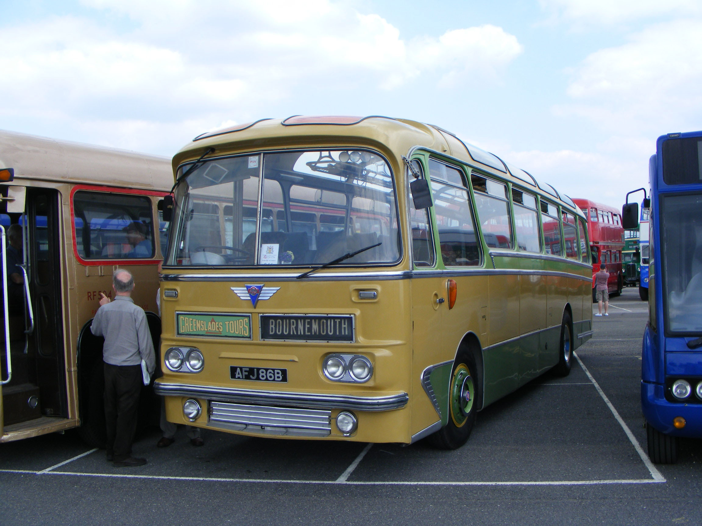 Greenslades preserved Harrington Cavalier bodied AEC Reliance AFJ86B is a popular site at many events and a great reminder of the old coach company. It is seen here arriving at SHOWBUS 2005.