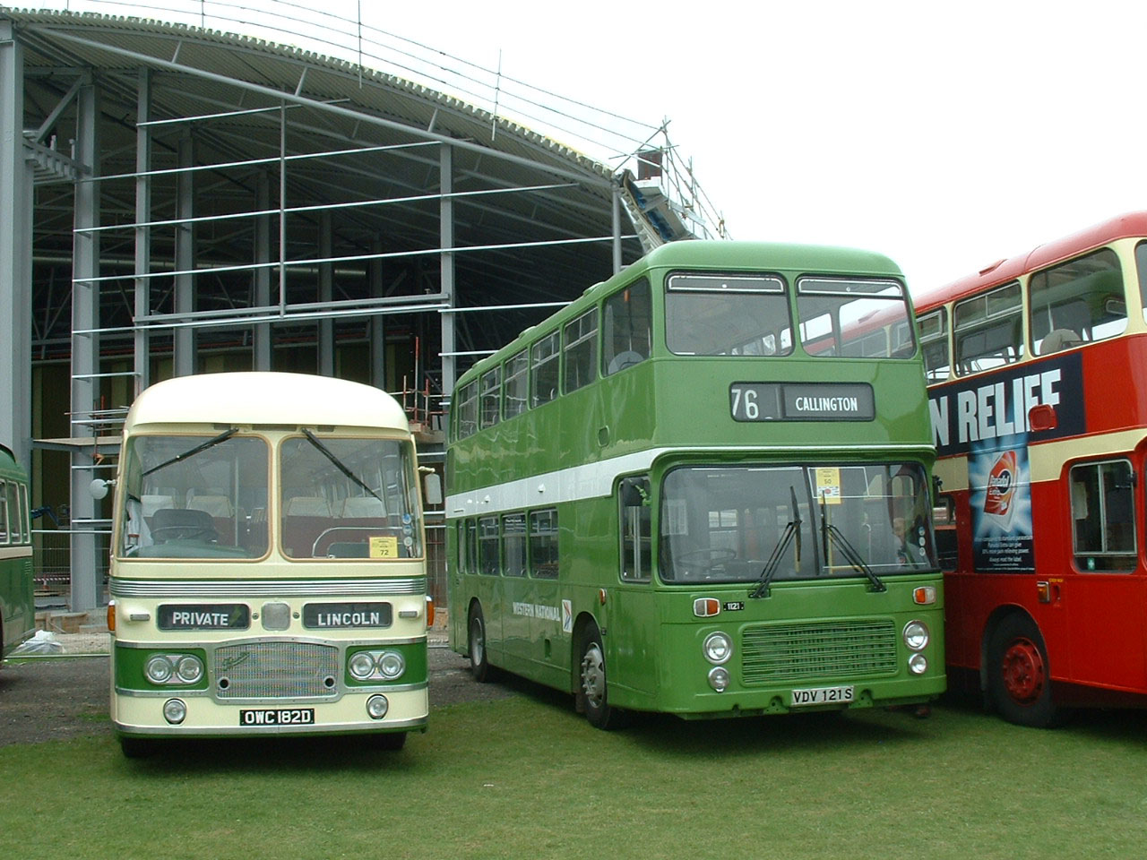 VR 1121 (VDV121S) is seen at SHOWBUS international 2005 in the special Bristol display by Concorde 02. Alongside is Tilling Transport MW6G T312 (OWC182D), behind the the Airspace hall takes shape.