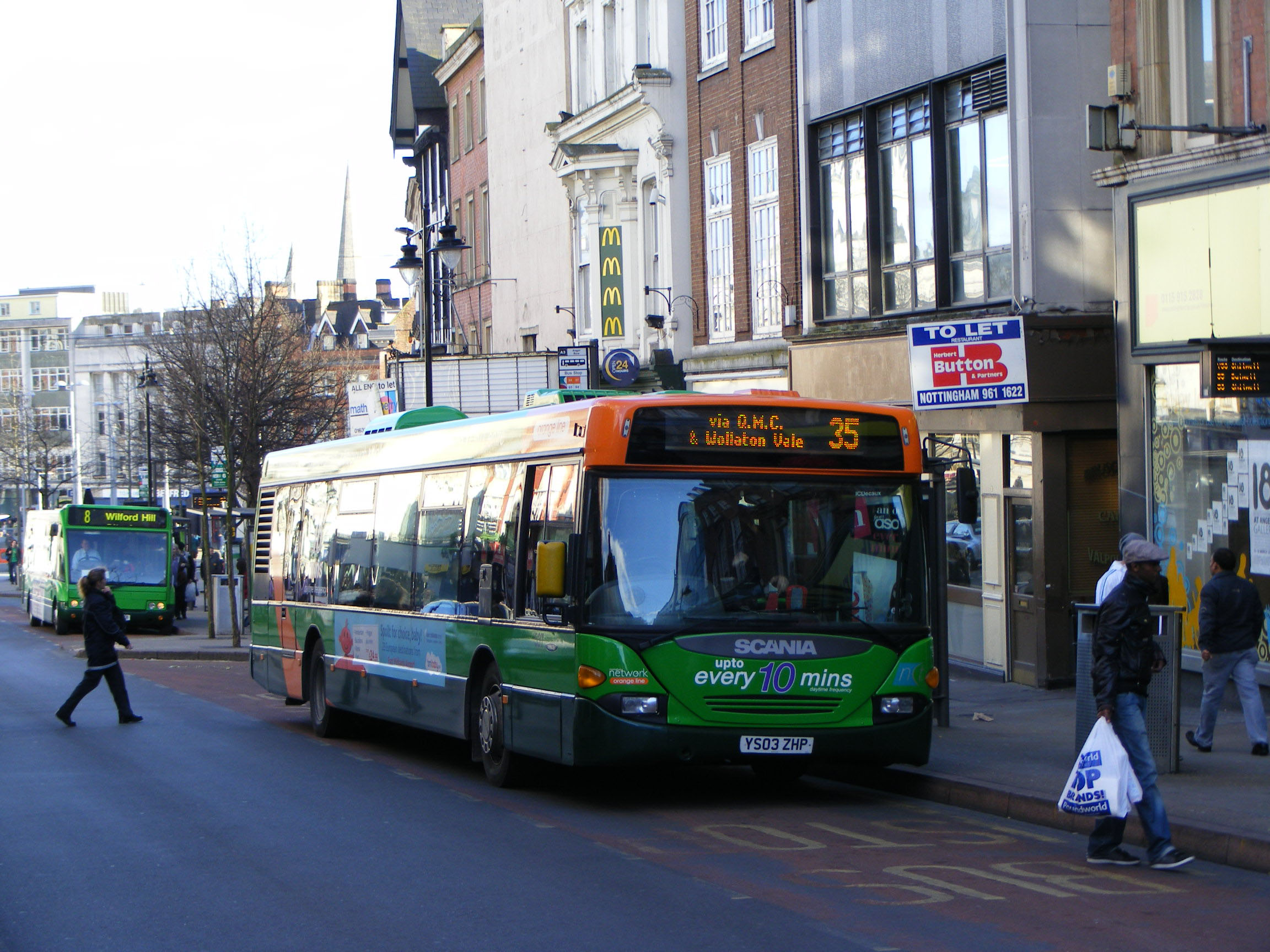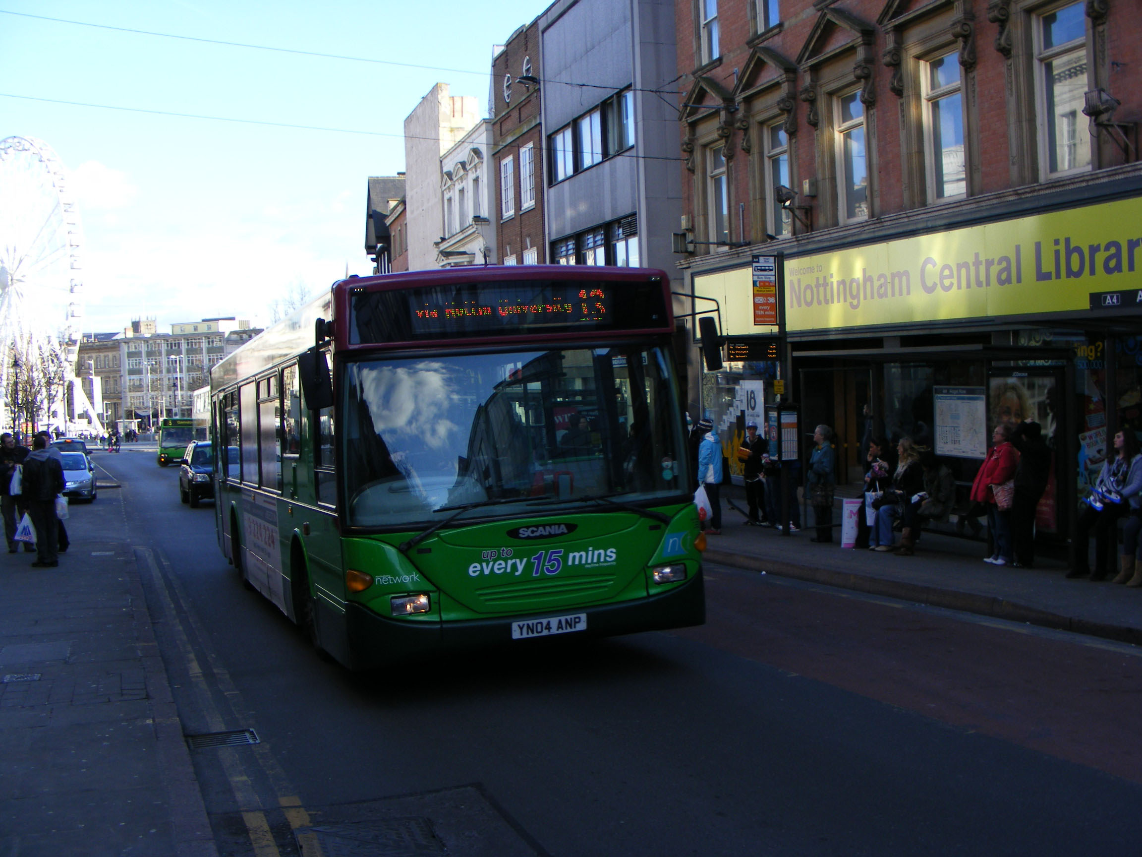 Earlier the OmniTowns were in Nottingham Network Purple Line livery seen on 205 (YN04ANP). The short Scanias only seat 33. As Scanias are known to be thirsty beasts, no surprise they have been replaced by Alexander Dennis Enviro200 buses on Purple Line.