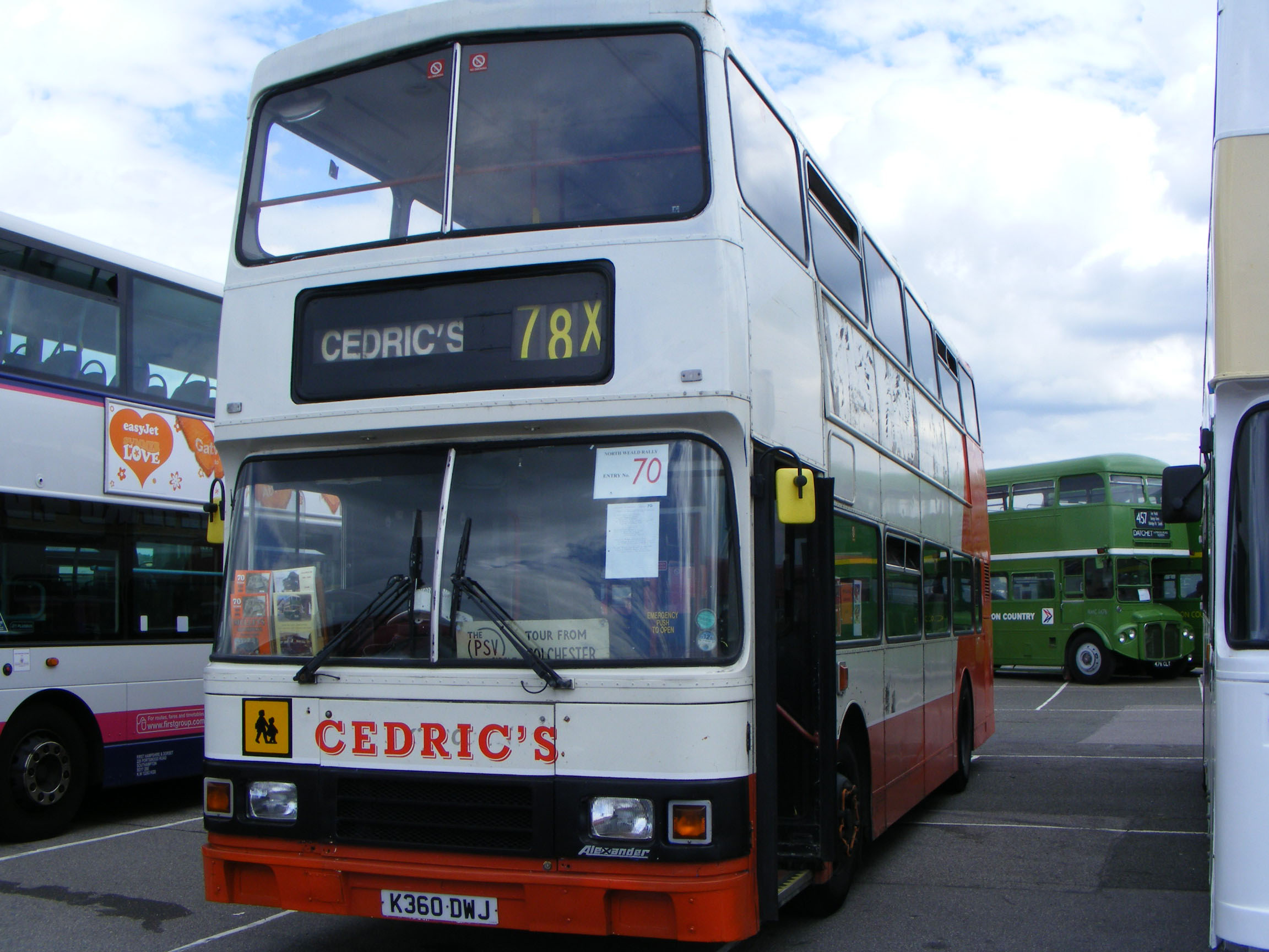 East Midland Leyland Olympian Alexander 360 (K360DWJ) appeared at North Weald in 2009 in the service of Cedric's of Wivenhoe.