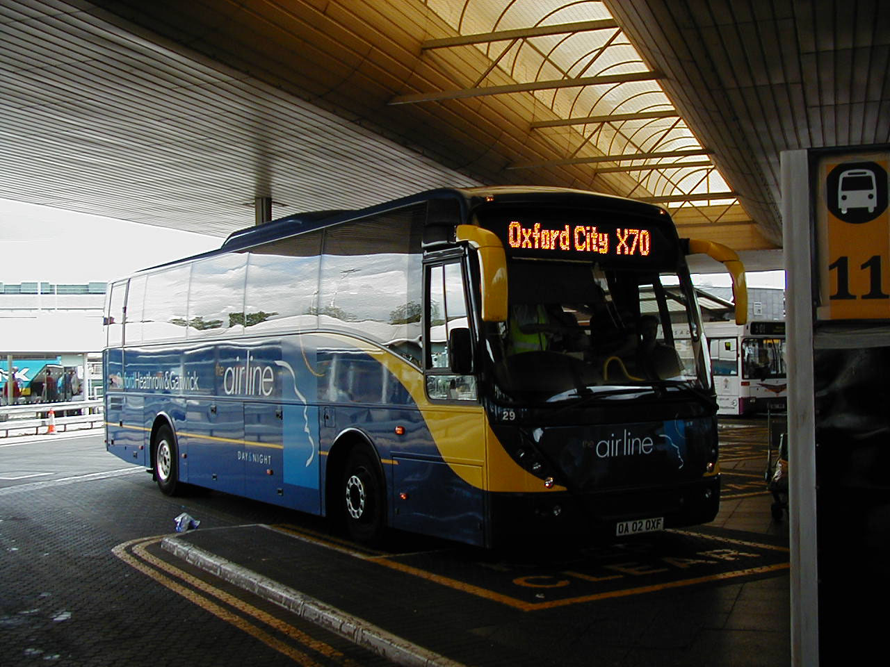 The original coaches in "airline" colours were the Plaxton Excalibur bodied Volvo B10M fleet, new in Citylink livery. Excalibur 71 (R808NUD) is seen on the M40 at Handy Cross in High Wycombe in May 2003.
