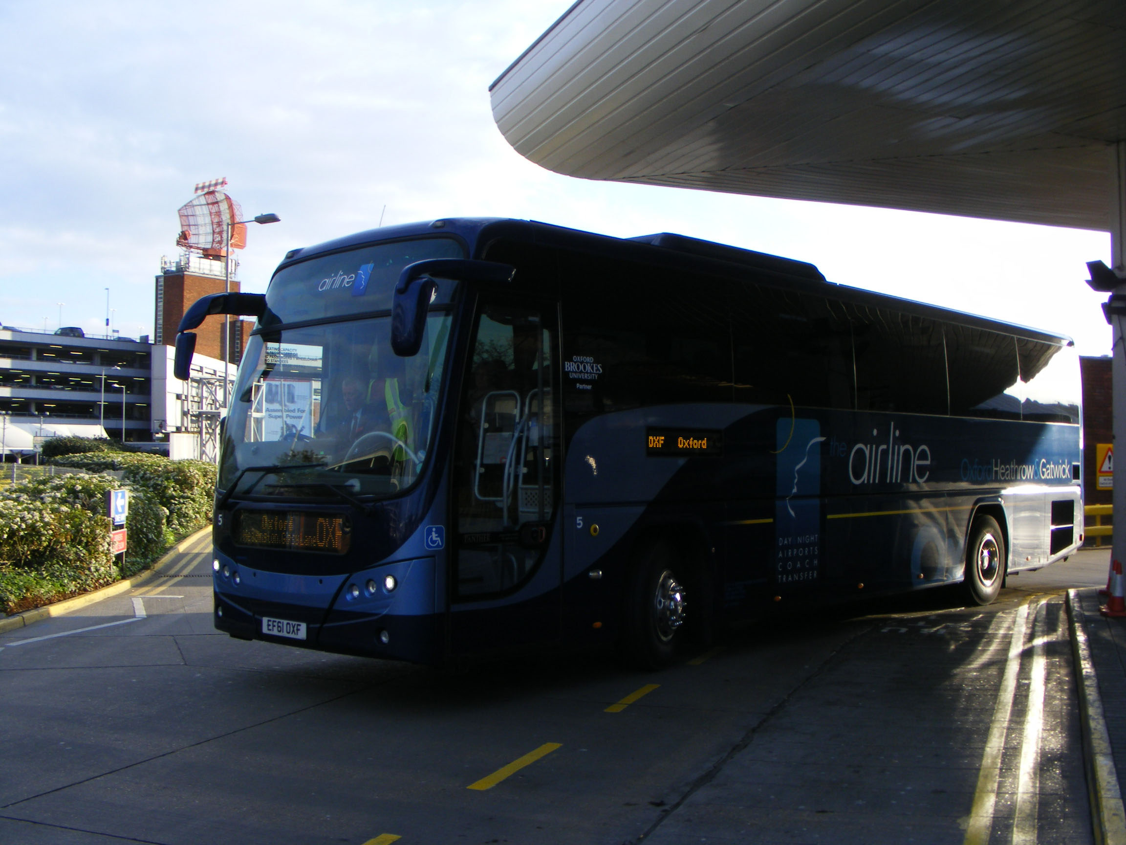 The first Plaxton bodied Scanias to be built for some time were delivered to City of Oxford for the airline service at the end of 2011. The current fleet of Plaxton bodied Volvos was refurbished and rebranded for the London service under the X90 brand. This coach, 5 (EF61OXF), a Panther bodied K360EB, is seen leaving Heathrow Airport Bus Station on April 21st 2012.