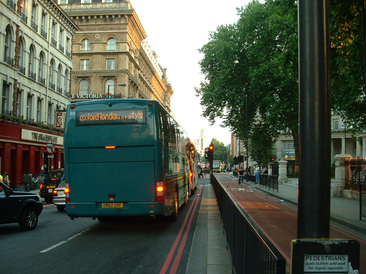 Volvo B10M 10 (R10OXF) heading for the capital on the M40 at Handy Cross, High Wycombe.