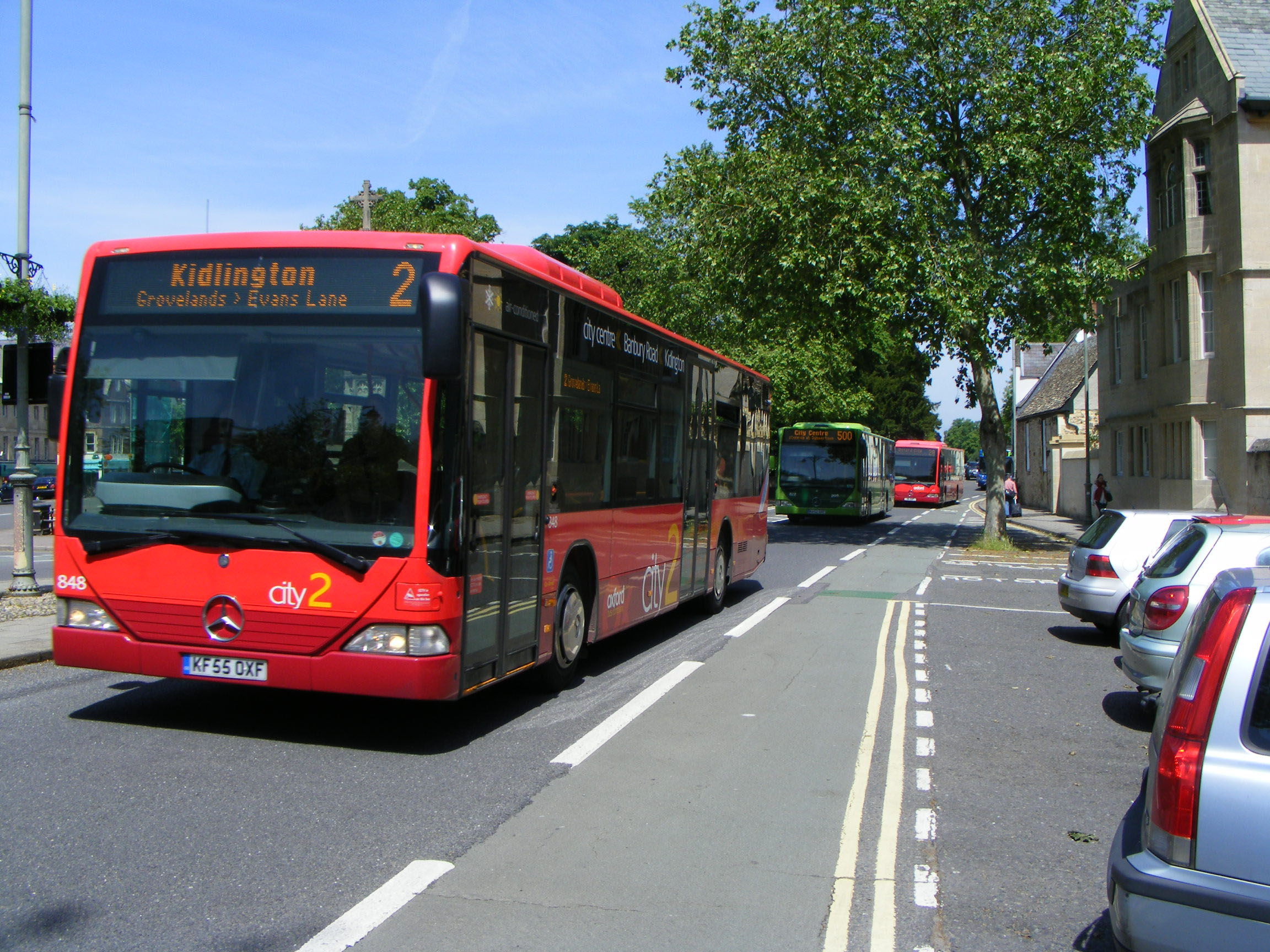 In May 2008 848 (KF55OXF) leads two other Citaros into the city, the middle one being on Park & Ride services. For a fleet once dominated by doubledeckers, the Citaro invasion was quite a turn around - at least till the Enviro400 deckers arrived.