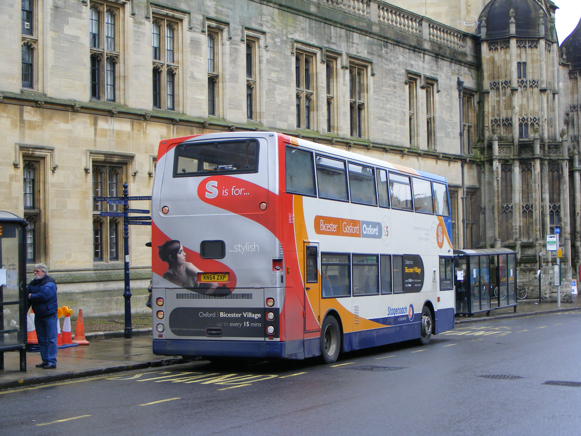 As only Stagecoach can, the country services into Oxford were heavily marketed with S-branding as seen on the rear of Dennis Trident 18199 (KN54ZXP) in February 2011.