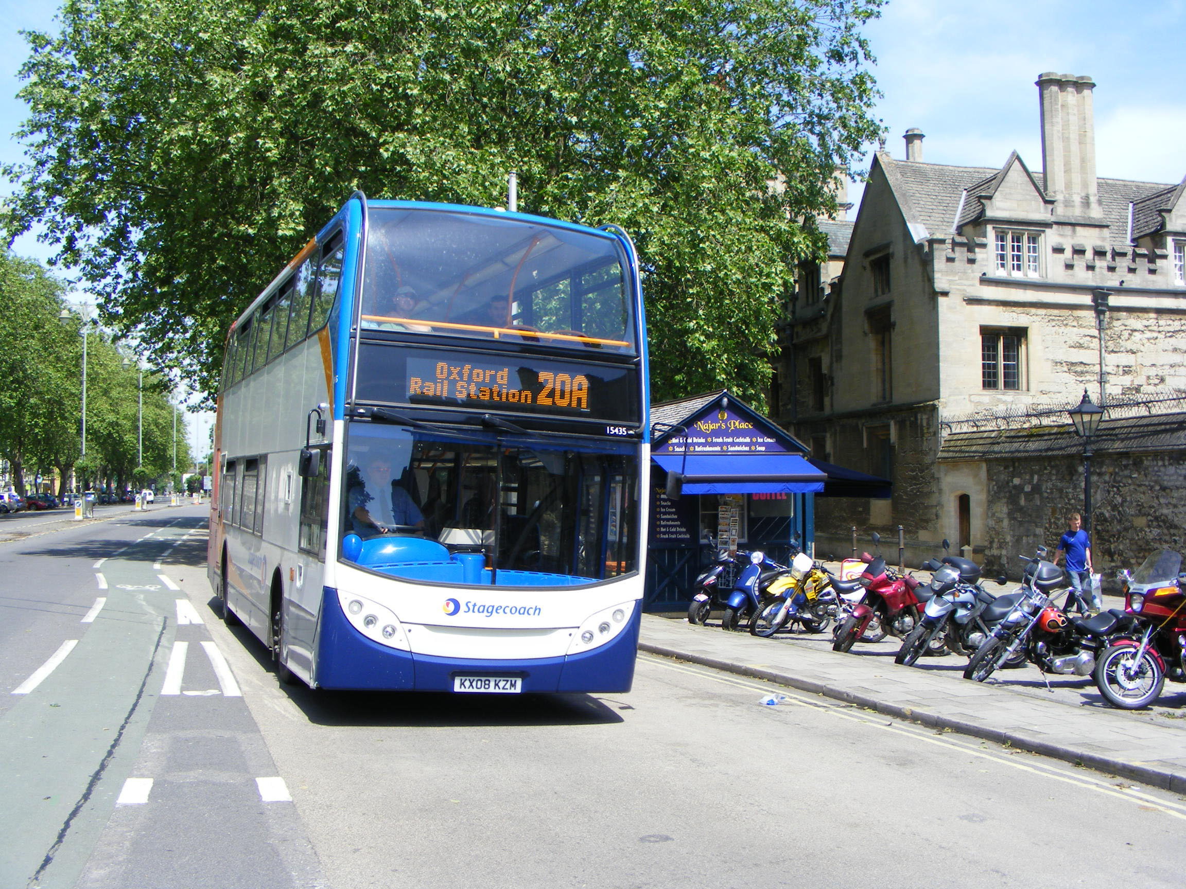 Stagecoach Oxford's initial Enviro400 doubledeckers were on Scania N230UD chassis, like 15435 (KX08KZM) seen in the city in May 2008.