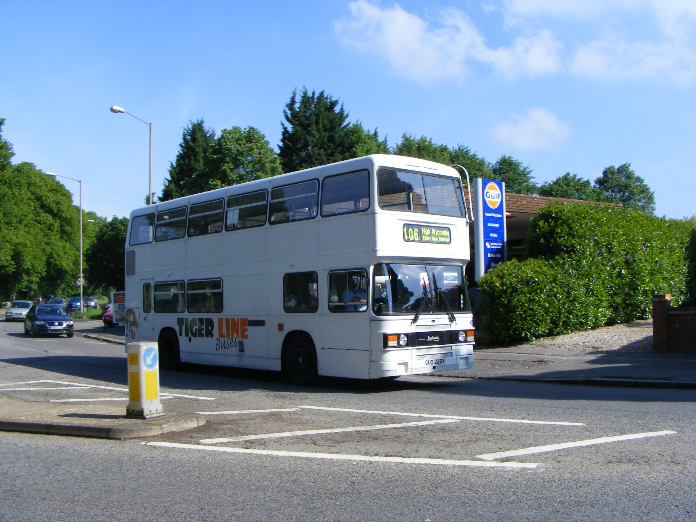 Working on Tiger Line service 106, from Princes Risborough to High Wycombe, is Woottens Tiger Line ex ECW bodied Oxford Leyland Olympian 222 (CUD222Y), at the West Wycombe Pedestal in June 2010. |