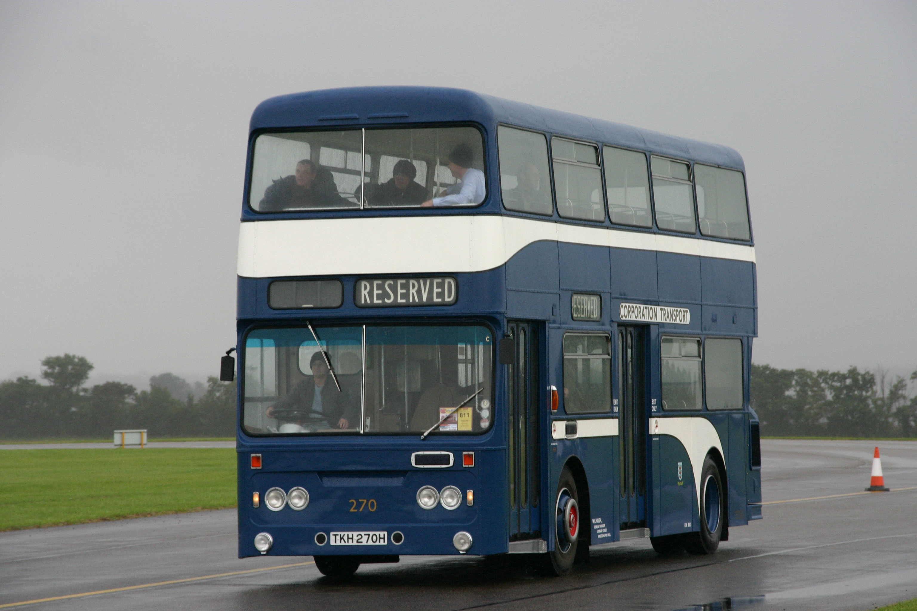 One of the twenty Roe bodied Atlanteans delivered over the 1969/1970 New Year period has been preserved, 270 (TKH270H). As we shall see it became something of a SHOWBUS regular and is seen at Duxford in 2001.