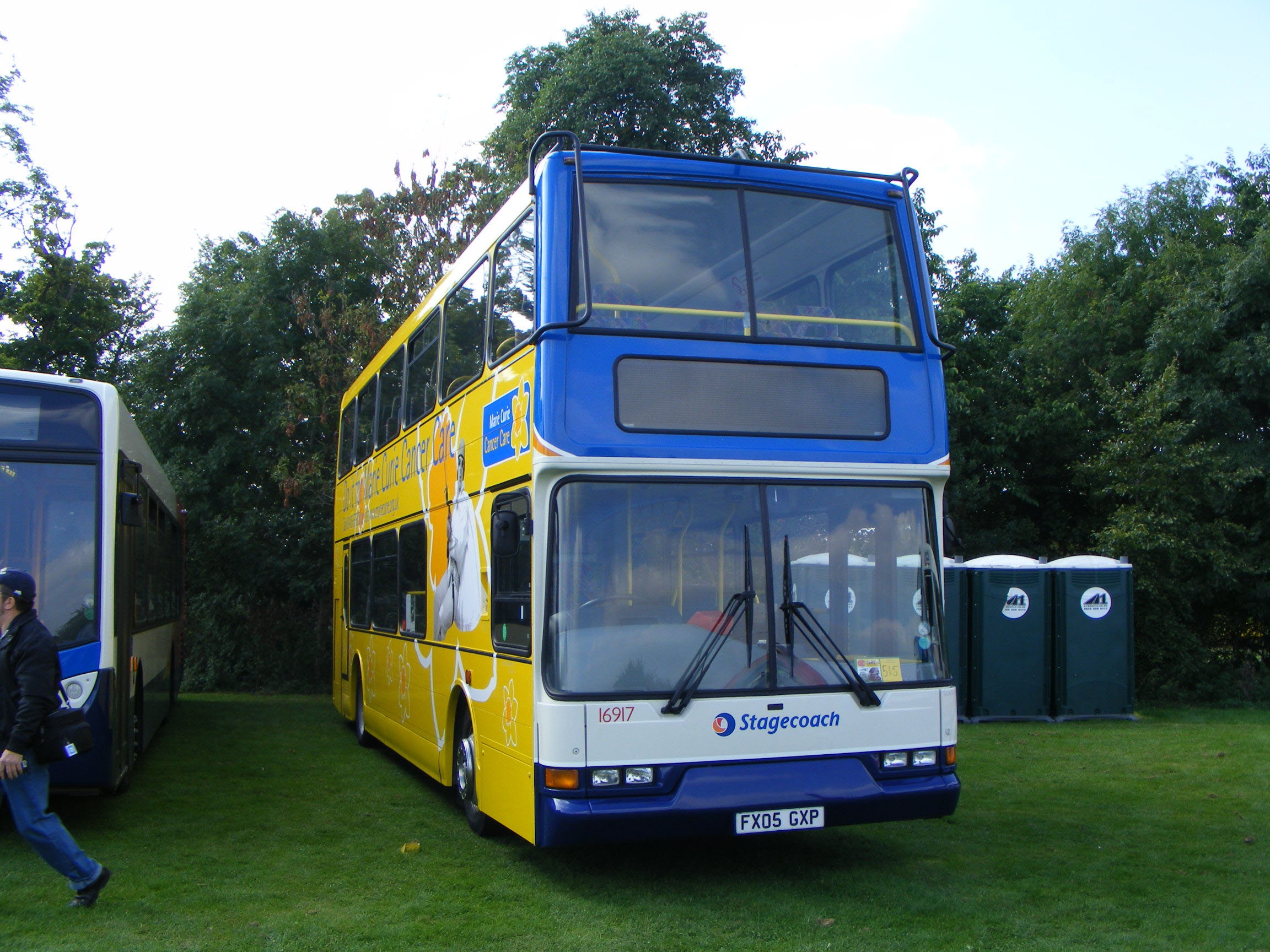 Rocking up at SHOWBUS 2008 was 16917 (FX05GXP), delivered as Road Car 917 in a version of the Coastal Connect red, yellow and green livery, but then was painted into this advert for Marie Curie Cancer Care Nurses, but retaining Stagecoach livery on the front.