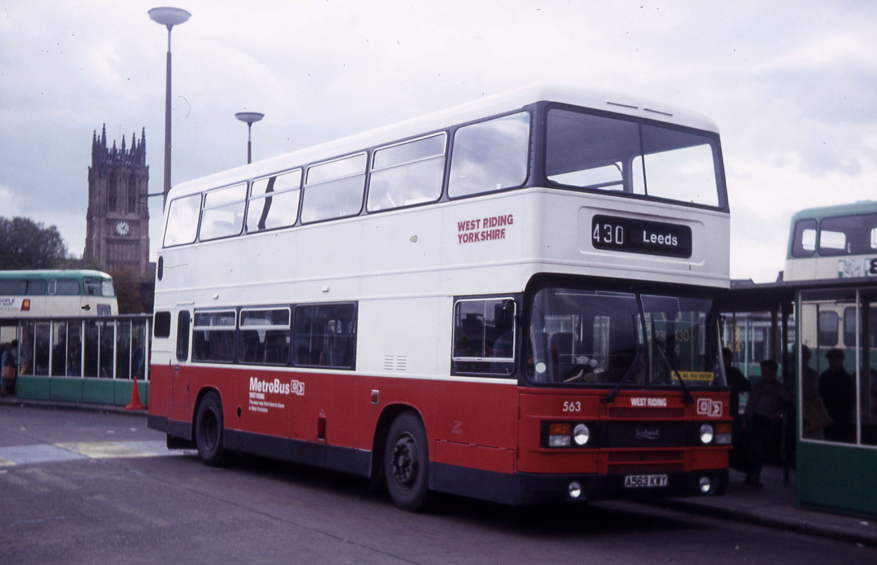 Transferred from Yorkshire Traction to Alder Valley in NBC days was this Alexander T-type bodied Leyland Leopard 1165 (LHL250P). The Leopard was joined at Reading by LHL246P, both arrived in 1982. When new, the batch of seven Tracky vehicles was intended for West Riding. The bus seen here is leaving Aylesbury Bus Station bound for Milton Keynes on the long distance United Counties joint express X15 route from Reading. |